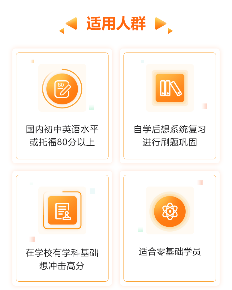AP强化课程立足于college board考试大纲,根据AP考试各单项特点,结合新东方专家名师团对AP考试的深入研究,为学员讲授高效解题规律、技巧,将考点、难点各个击破。开设十余种科目,学员根据个人情况选择适合自己的科目。