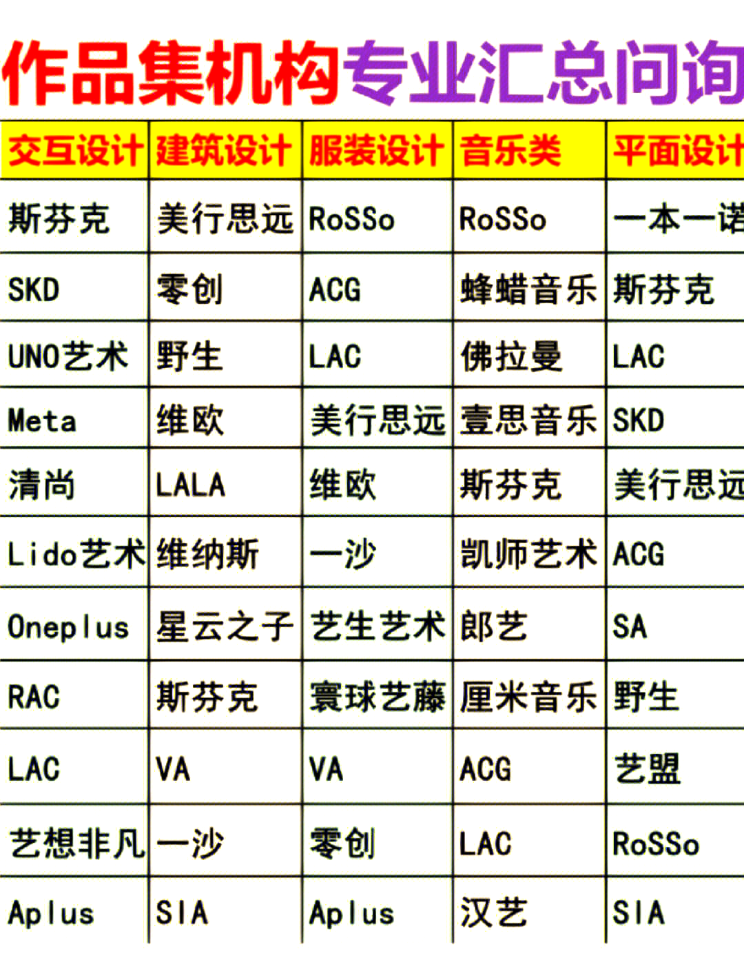 覆盖艺术设计、音乐、电影等多领域,提供作品集培训、海外教授课程等,校区分布广。