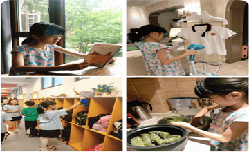 除了学习活动,英迪的老师们鼓励孩子参与,如做饭、洗衣、打扫卫生等力所能及的家务……每个孩子都在积极参与并发自内心的喜欢这个过程。个别孩子即使刚开始不积极,看到同学们受到表扬也坐不住了,从一点点做起,慢慢喜欢这个事情,这就是大环境的影响。