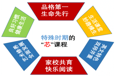 中芯学校在假期里,就开始组织各科教师积极为“停课不停学”做准备。经过多次讨论和实践,整合出以“品格第一”为基石,以“全人教育”为出发点,结合“家校共育”,运用“乐学课堂”的基本模式,设计出特殊时期下的“芯”课程。