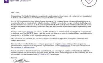 美国威力塔斯学校北京校区学子收获世界名校纽约大学帝势艺术学院电影专业录取!